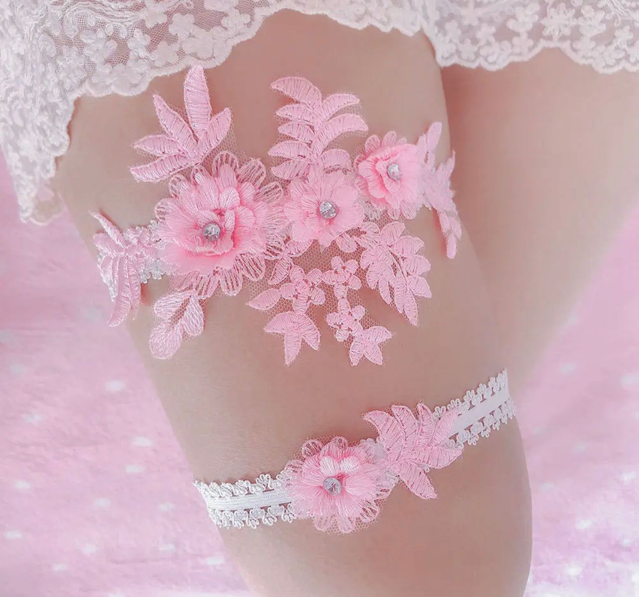 Pink Lace Embroidery Wedding Garter Set, Bridal Toss Set
